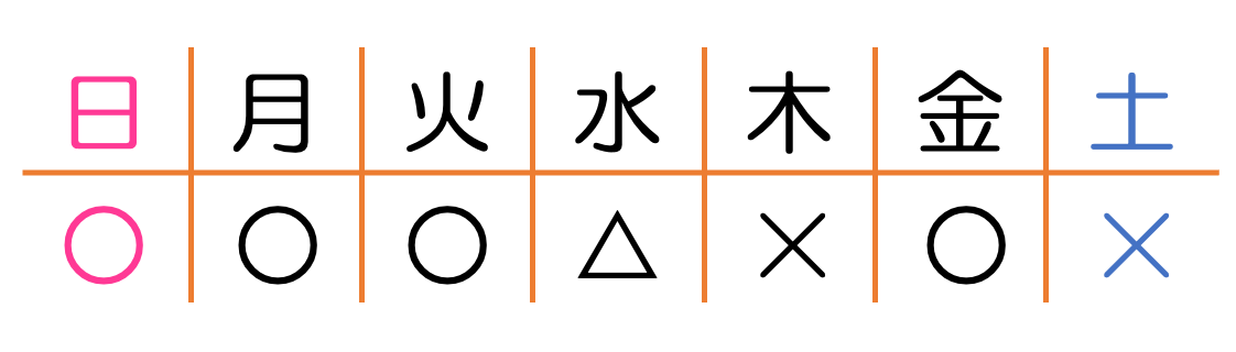 ○は空きアリ △はご相談により利用可 ×は空きなし