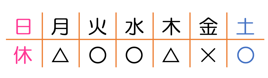 ○は空きアリ △はご相談により利用可 ×は空きなし